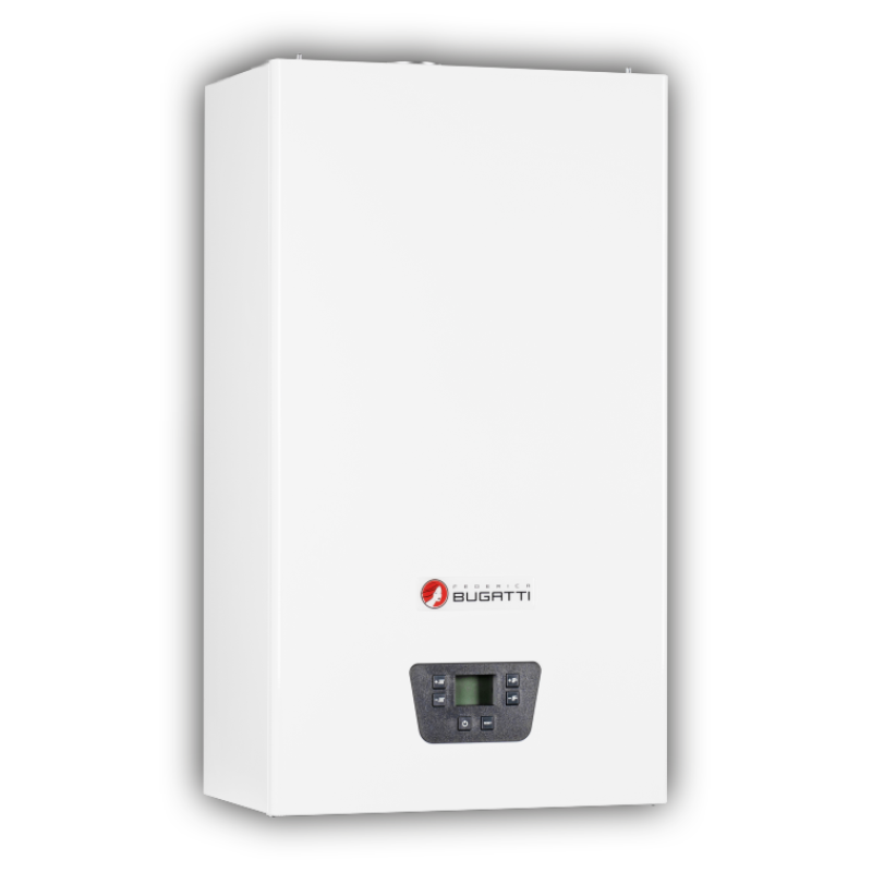 Настенный газовый двухконтурный котел Federica Bugatti 24 TECH - компактная экономичная модель с дисплеем и пластинчатым теплообменником для нагрева воды. Предназначен для отопления и снабжения горячей водой помещений до 240 м². Собирается в Италии.
